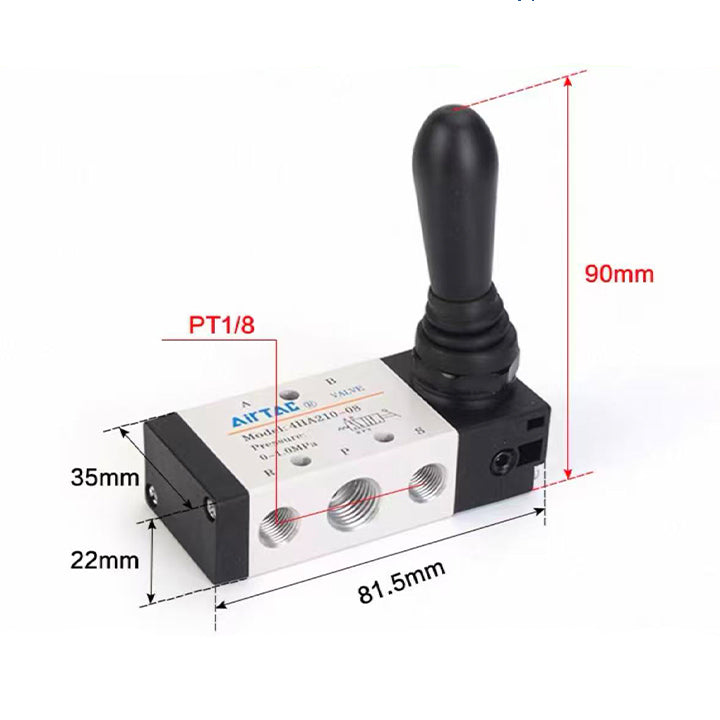 Specification: manual reset manual valve,Series: 200 series,Function: five two-position,Nozzle caliber: 1/8",Tooth type: PT tooth,