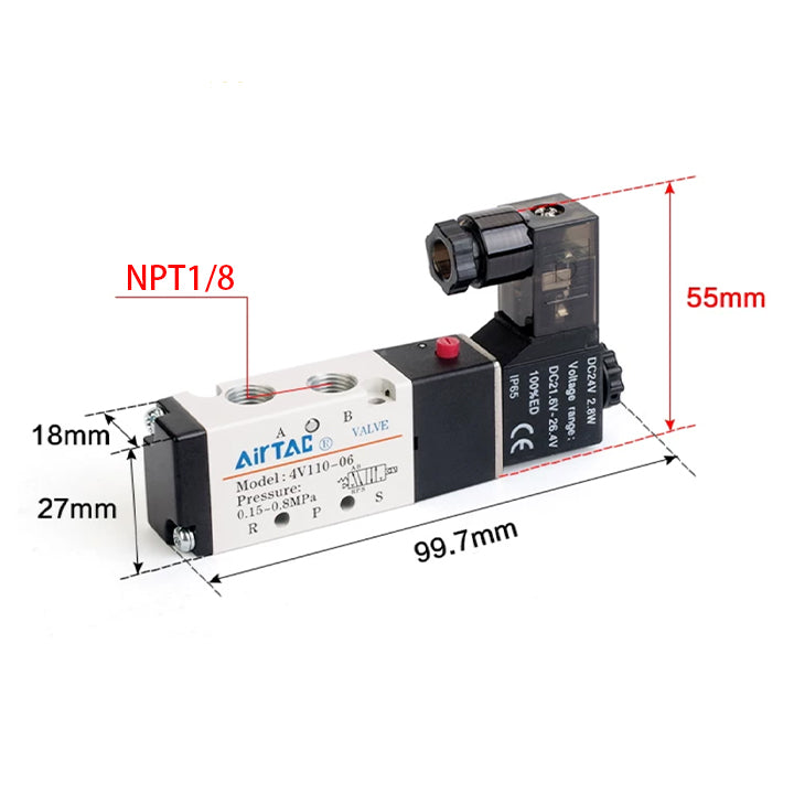The Airtac 4V100 solenoid air valve series is a functional replacement for the SMC VFS1000 series.