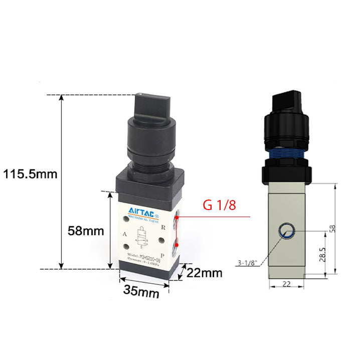 Structure: M type three two,Specifications: Selective manual valve,Series: 200 series single control,Nozzle caliber: 1/8",Button Color: Black,Tooth type: G tooth,