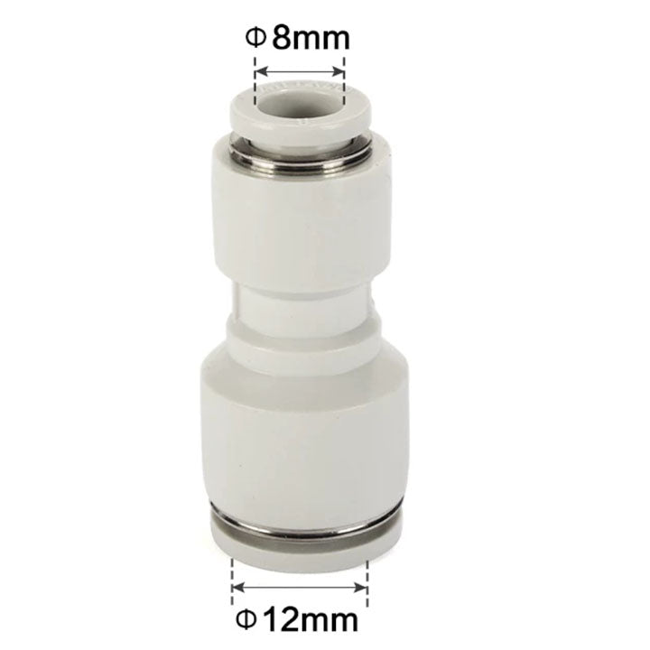 Specifications: reducing straight through,Nozzle caliber I: ø12mm,Nozzle caliber II: ø8mm,Color: gray (interface: gray/body: gray),
