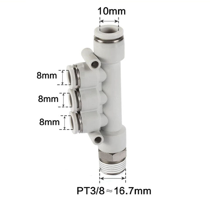 Airtac PKD: Push Lock Fitting. Male Reducer Triple Branch - PKD10-803