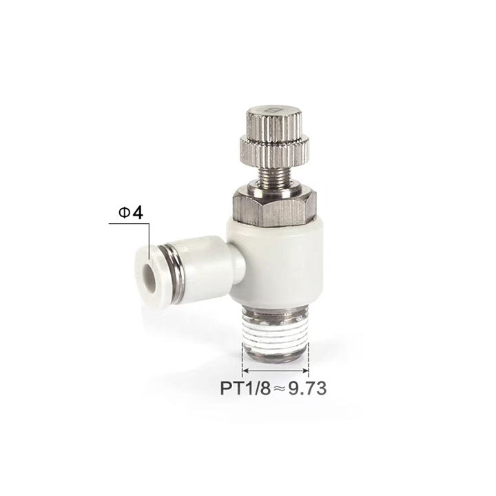 Specification: L type,Nozzle caliber: ø4mm,Connection thread: PT1/8,Throttling mode: intake throttle type,Color: gray (interface: gray/body: gray),Tooth type: PT tooth,