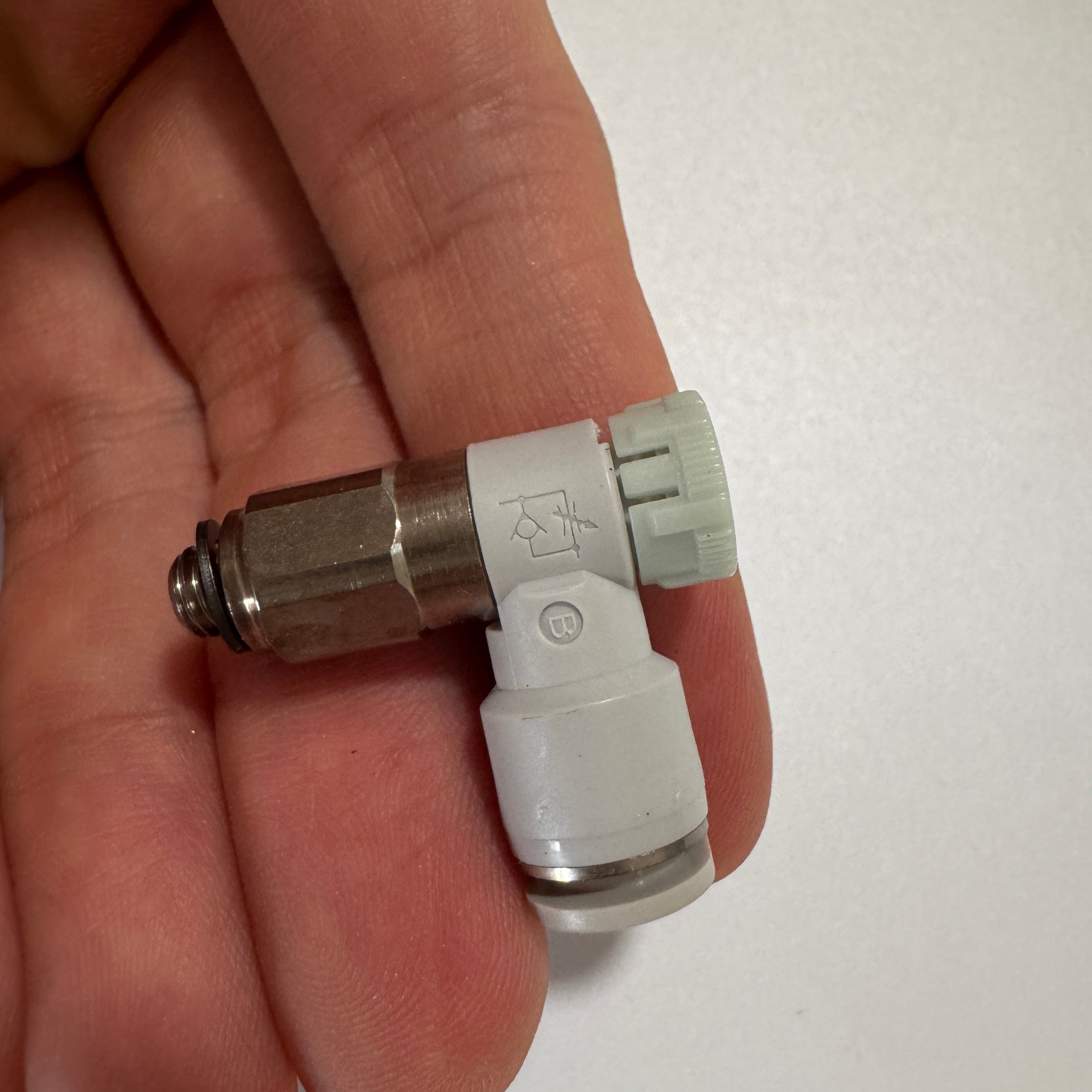 Specifications: push-lock speed control valve,Nozzle caliber: ø6mm,Connection thread: M5 × 0.8,Throttling mode: intake throttle type,Color: gray (interface: gray/body: gray),Tooth type: PT tooth,Type: Mini,