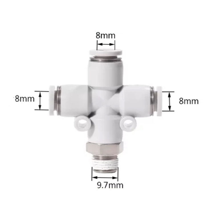 Specification: cross thread four-way,Nozzle caliber: ø8mm,Connection thread: PT1/8,Color: black (interface: black/body: black),Tooth type: PT tooth,Click to download the Airtac catalogProduct... Read more