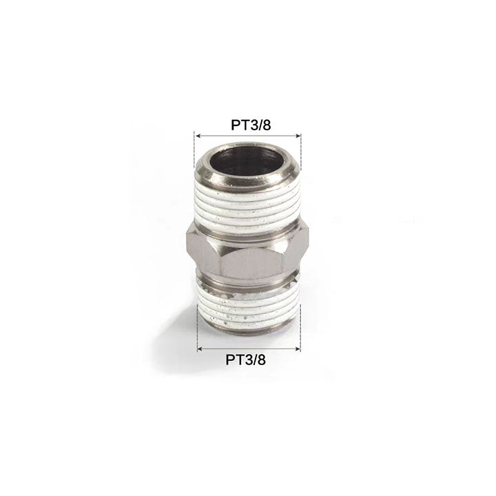 Specification: double external thread straight through , Connecting thread I: PT3/8 , Connecting thread II: PT3/8 , Tooth type: PT... Read more